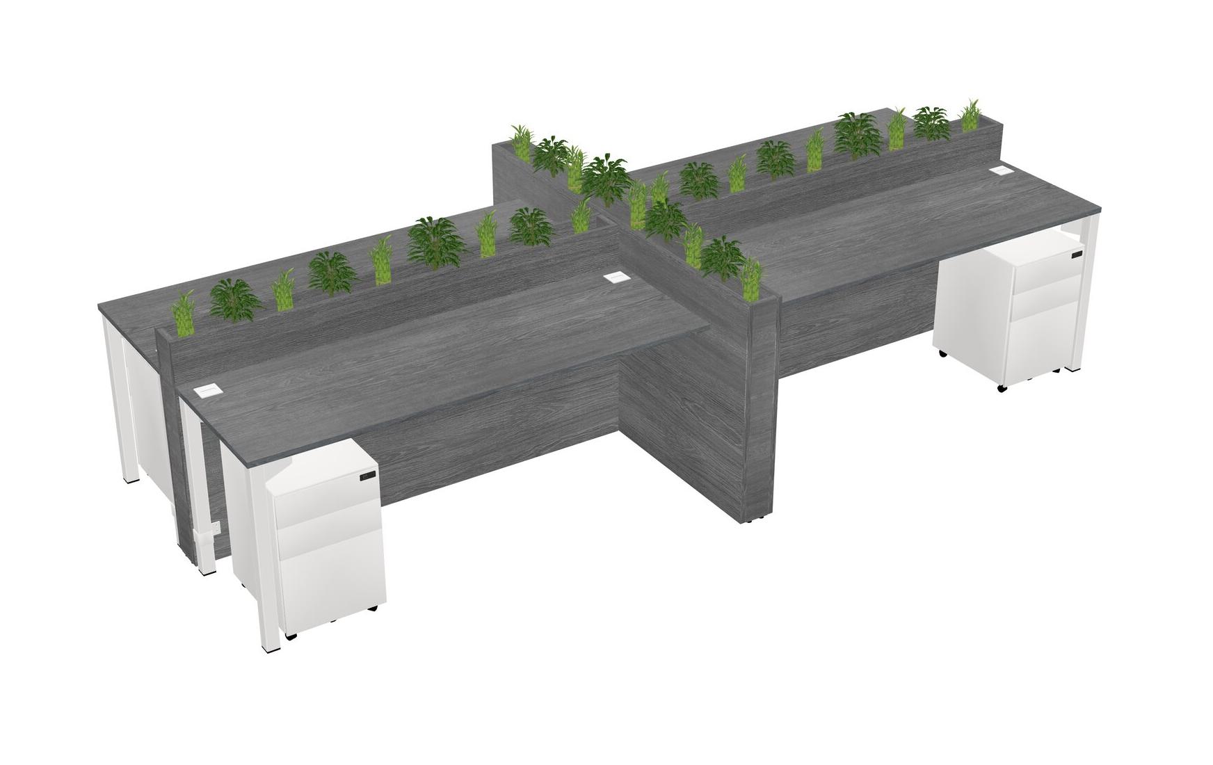 Grey Rectangular Shared Office Desk For 4 Persons Let Nature Help Flourish Your Productivity The Base Comes With An Adjustable Shelf To Provide Space For Pots (Pots & Plants Sold Separately)