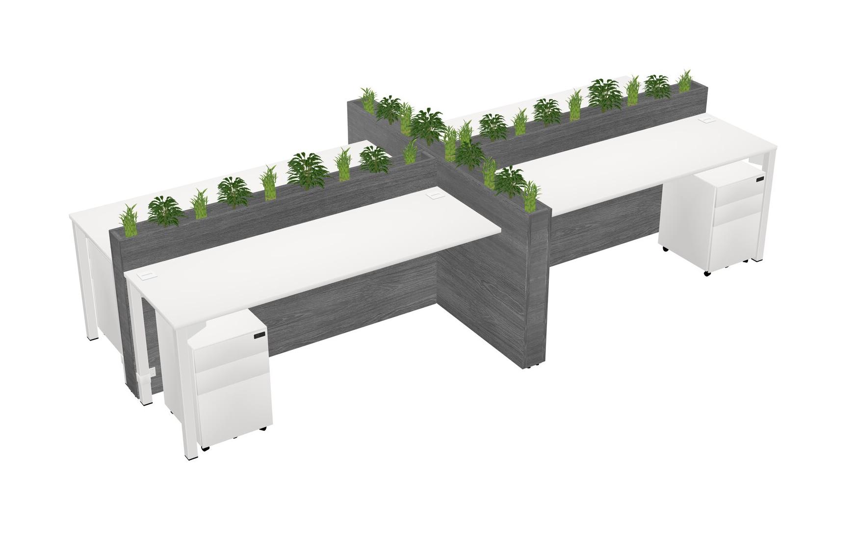 White Rectangular Shared Office Desk For 4 Persons Let Nature Help Flourish Your Productivity The Base Comes With An Adjustable Shelf To Provide Space For Pots (Pots & Plants Sold Separately)