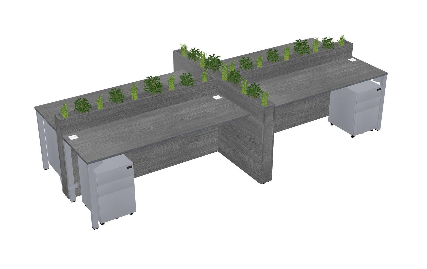Grey Rectangular Shared Office Desk For 4 Persons Let Nature Help Flourish Your Productivity The Base Comes With An Adjustable Shelf To Provide Space For Pots (Pots & Plants Sold Separately)