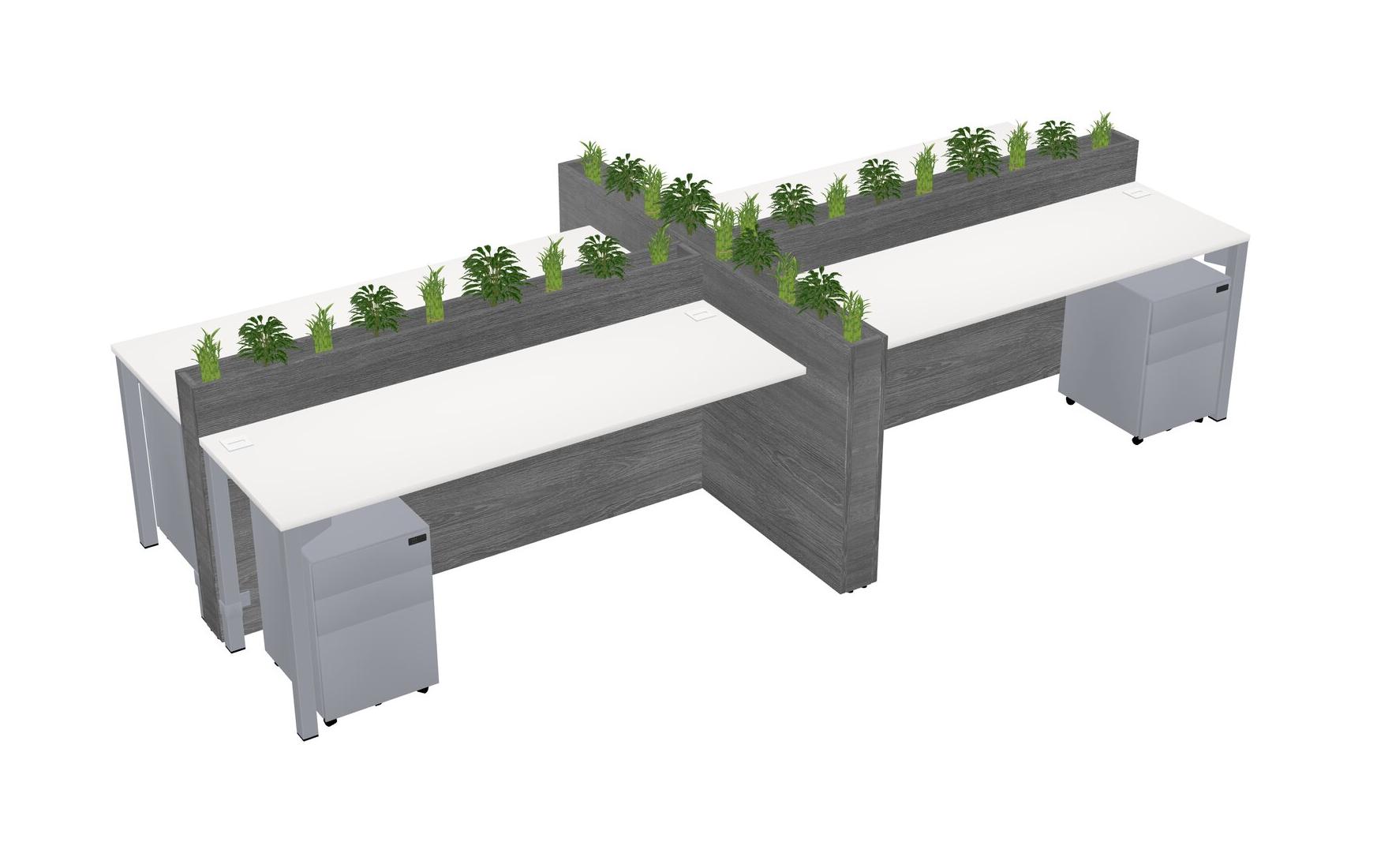 White Rectangular Shared Office Desk For 4 Persons Let Nature Help Flourish Your Productivity The Base Comes With An Adjustable Shelf To Provide Space For Pots (Pots & Plants Sold Separately)