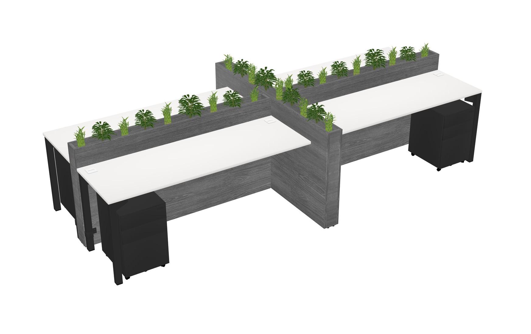 White Rectangular Shared Office Desk For 4 Persons Let Nature Help Flourish Your Productivity The Base Comes With An Adjustable Shelf To Provide Space For Pots (Pots & Plants Sold Separately)