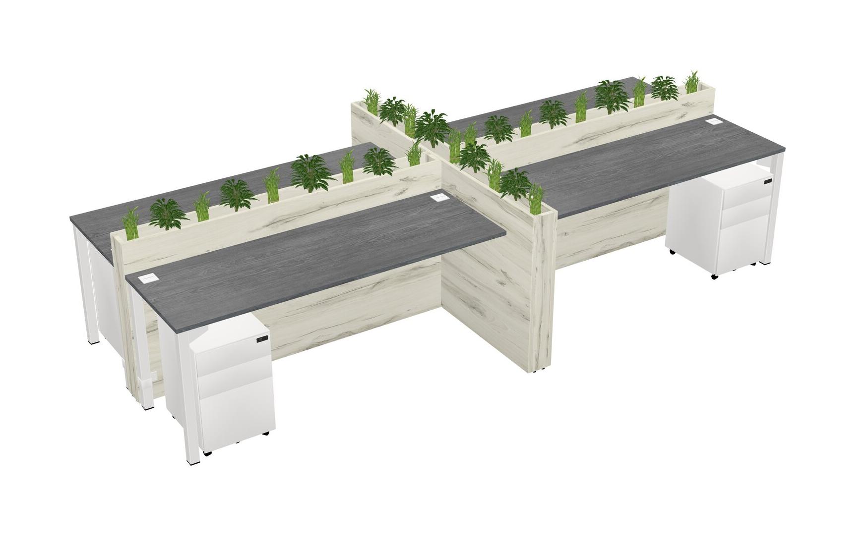Grey Rectangular Shared Office Desk For 4 Persons Let Nature Help Flourish Your Productivity The Base Comes With An Adjustable Shelf To Provide Space For Pots (Pots & Plants Sold Separately)
