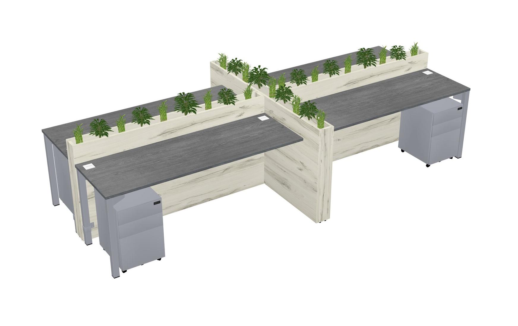 Grey Rectangular Shared Office Desk For 4 Persons Let Nature Help Flourish Your Productivity The Base Comes With An Adjustable Shelf To Provide Space For Pots (Pots & Plants Sold Separately)