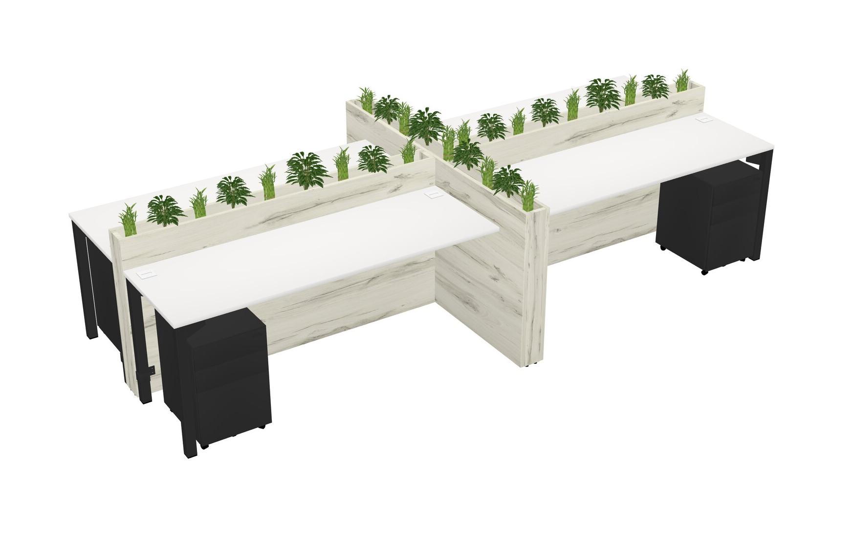 White Rectangular Shared Office Desk For 4 Persons Let Nature Help Flourish Your Productivity The Base Comes With An Adjustable Shelf To Provide Space For Pots (Pots & Plants Sold Separately)