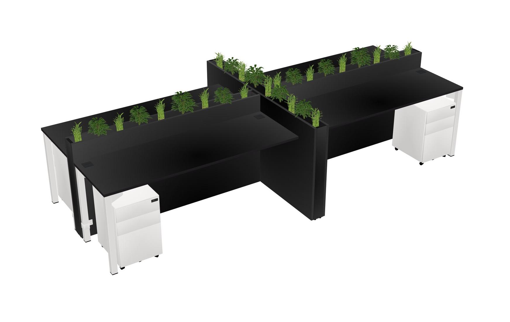 Black Rectangular Shared Office Desk For 4 Persons Let Nature Help Flourish Your Productivity The Base Comes With An Adjustable Shelf To Provide Space For Pots (Pots & Plants Sold Separately)