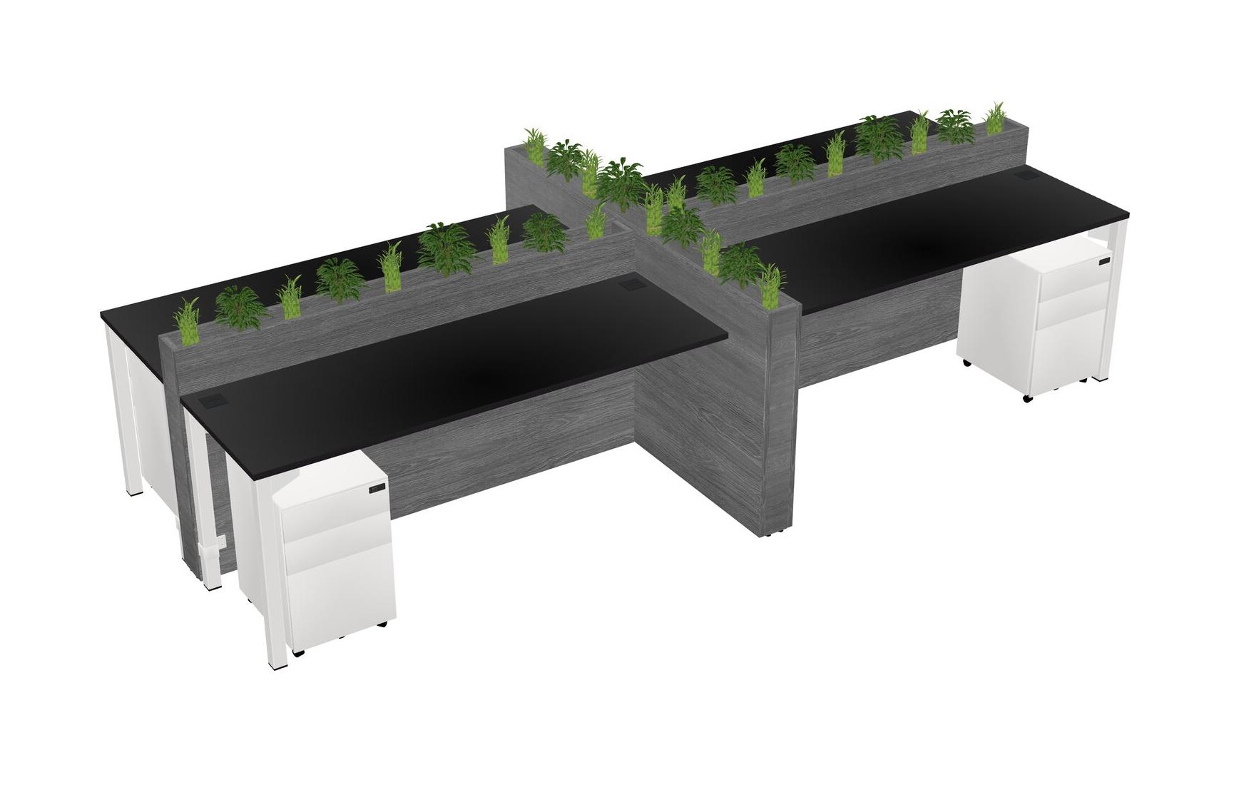 Black Rectangular Shared Office Desk For 4 Persons Let Nature Help Flourish Your Productivity The Base Comes With An Adjustable Shelf To Provide Space For Pots (Pots & Plants Sold Separately)