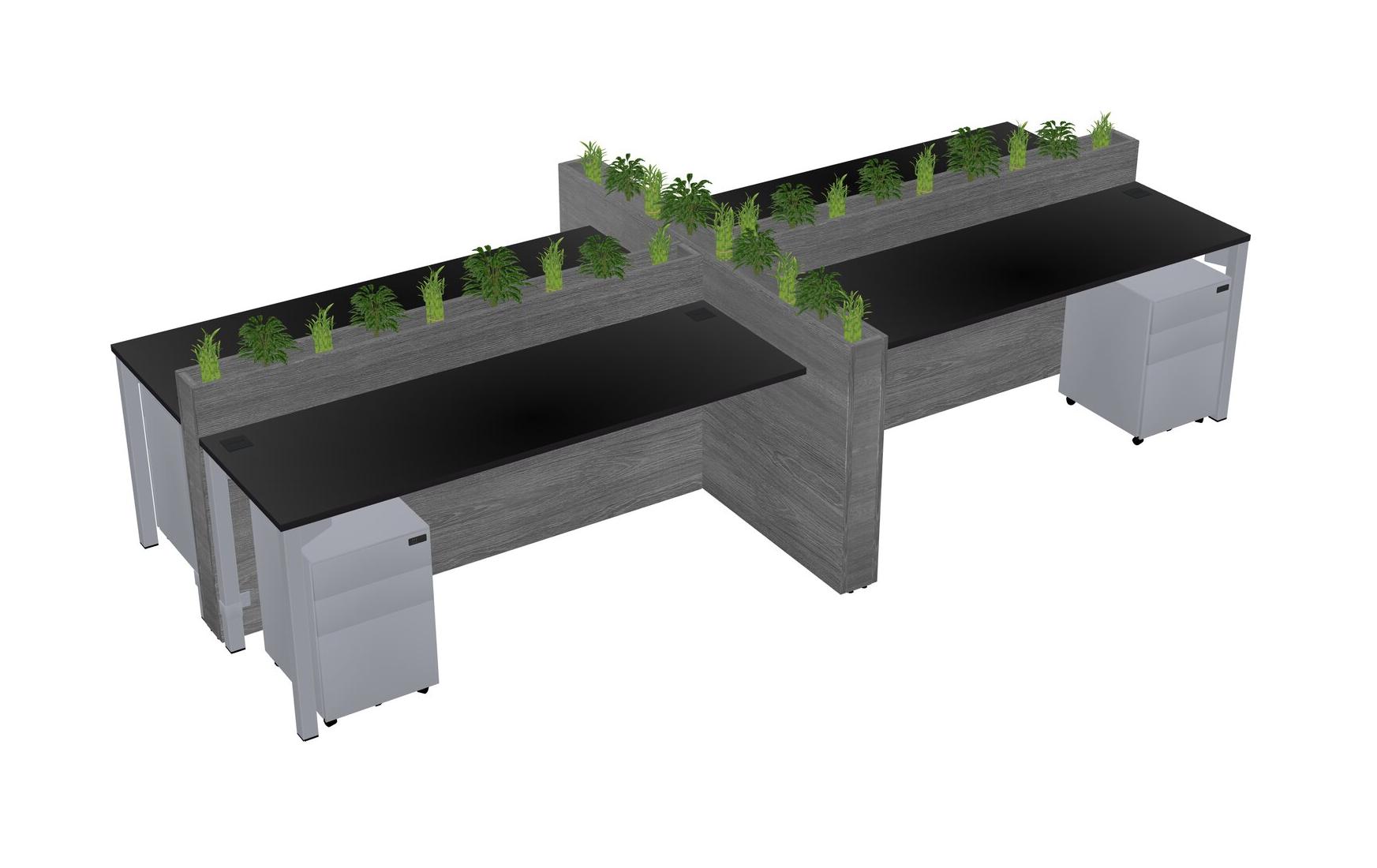 Black Rectangular Shared Office Desk For 4 Persons Let Nature Help Flourish Your Productivity The Base Comes With An Adjustable Shelf To Provide Space For Pots (Pots & Plants Sold Separately)