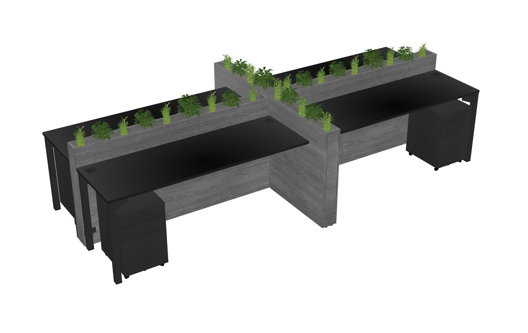 Black Rectangular Shared Office Desk For 4 Persons Let Nature Help Flourish Your Productivity The Base Comes With An Adjustable Shelf To Provide Space For Pots (Pots & Plants Sold Separately)