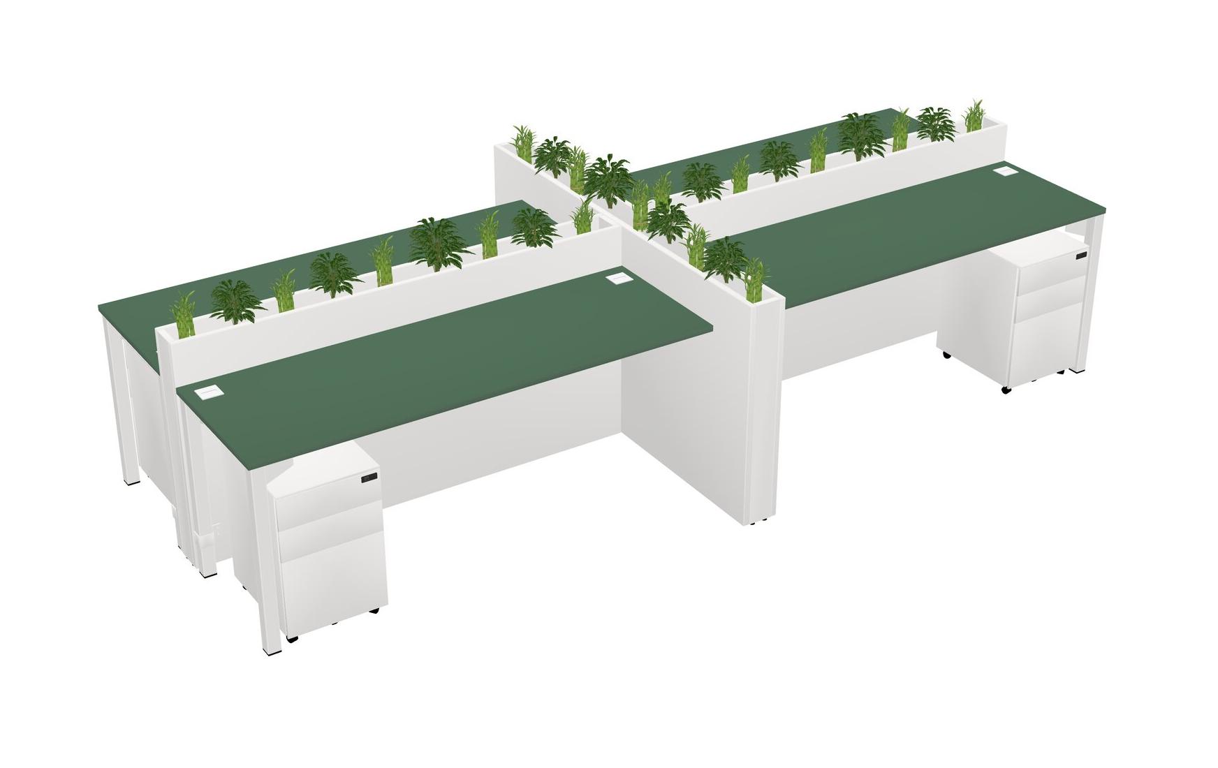 Green Rectangular Shared Office Desk For 4 Persons Let Nature Help Flourish Your Productivity The Base Comes With An Adjustable Shelf To Provide Space For Pots (Pots & Plants Sold Separately)