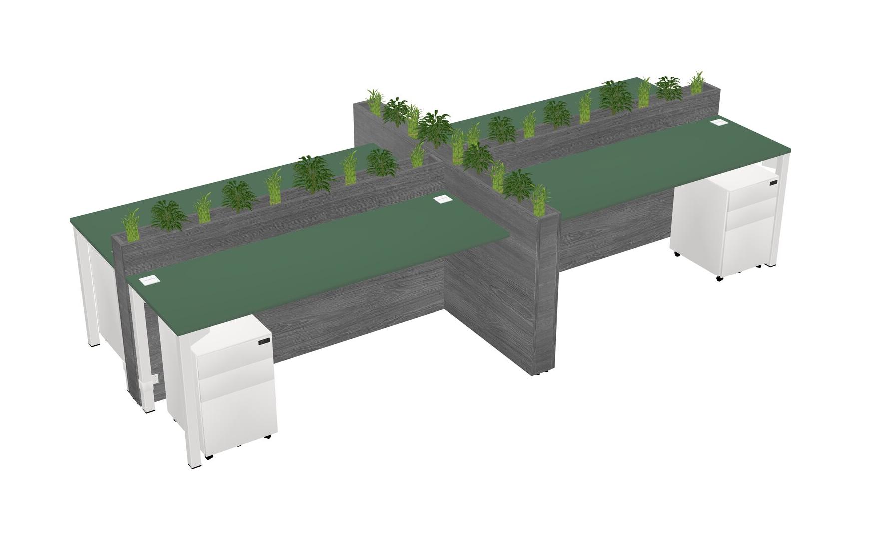 Green Rectangular Shared Office Desk For 4 Persons Let Nature Help Flourish Your Productivity The Base Comes With An Adjustable Shelf To Provide Space For Pots (Pots & Plants Sold Separately)