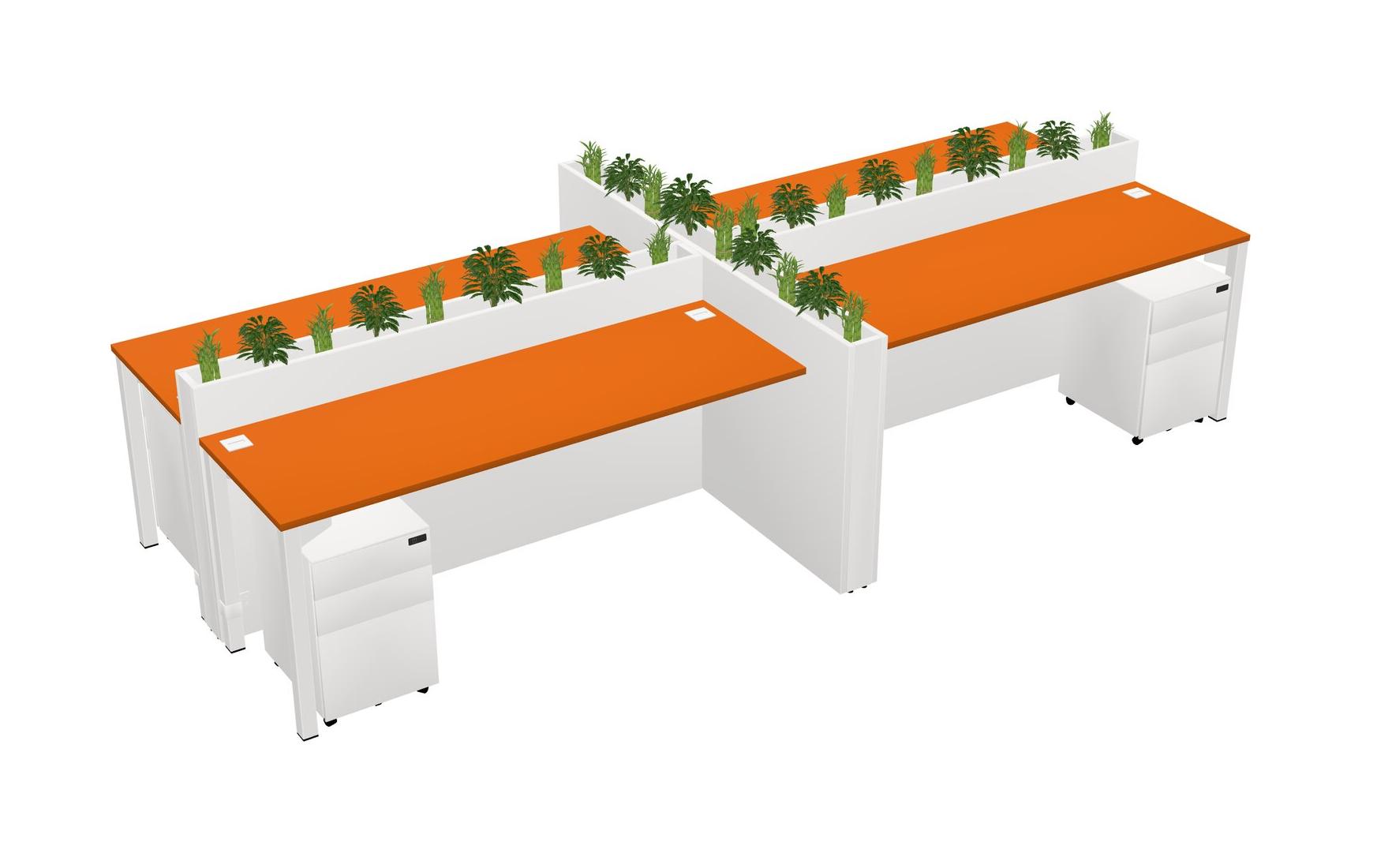 Orange Rectangular Shared Office Desk For 4 Persons Let Nature Help Flourish Your Productivity The Base Comes With An Adjustable Shelf To Provide Space For Pots (Pots & Plants Sold Separately)