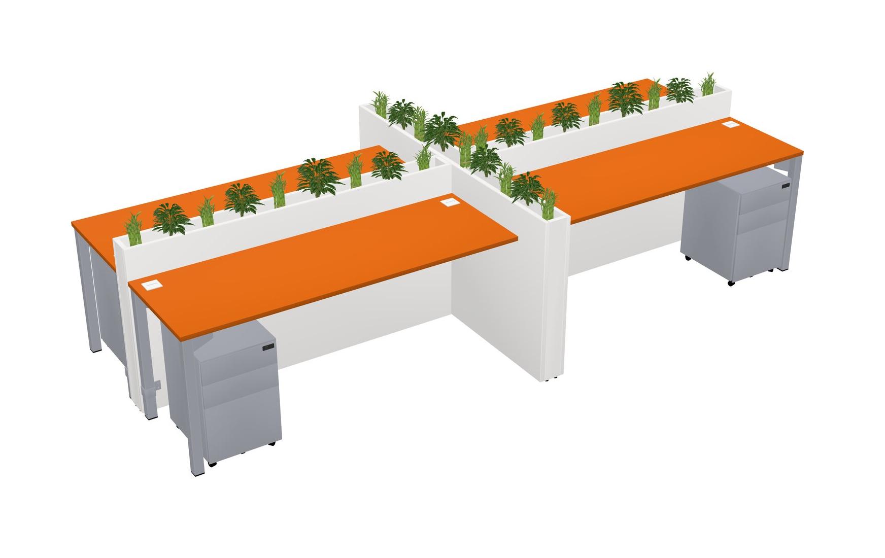 Orange Rectangular Shared Office Desk For 4 Persons Let Nature Help Flourish Your Productivity The Base Comes With An Adjustable Shelf To Provide Space For Pots (Pots & Plants Sold Separately)