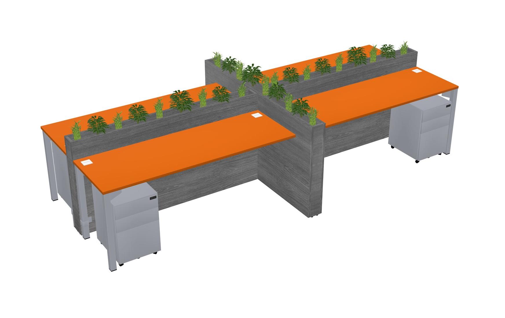 Orange Rectangular Shared Office Desk For 4 Persons Let Nature Help Flourish Your Productivity The Base Comes With An Adjustable Shelf To Provide Space For Pots (Pots & Plants Sold Separately)