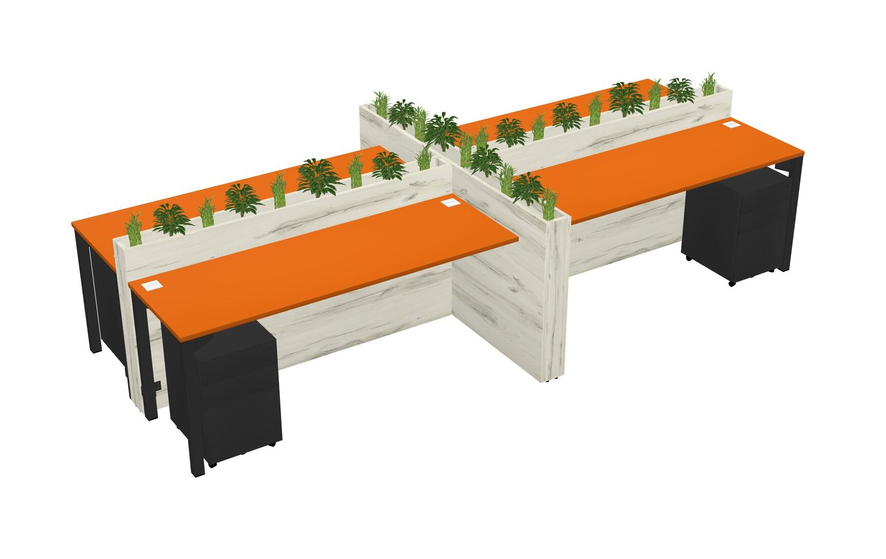 Orange Rectangular Shared Office Desk For 4 Persons Let Nature Help Flourish Your Productivity The Base Comes With An Adjustable Shelf To Provide Space For Pots (Pots & Plants Sold Separately)