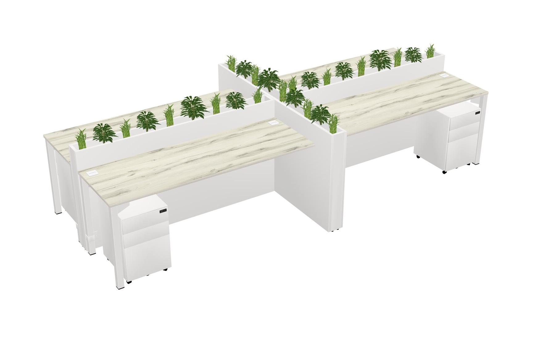 Heinne Holz Rectangular Shared Office Desk For 4 Persons Let Nature Help Flourish Your Productivity The Base Comes With An Adjustable Shelf To Provide Space For Pots (Pots & Plants Sold Separately)