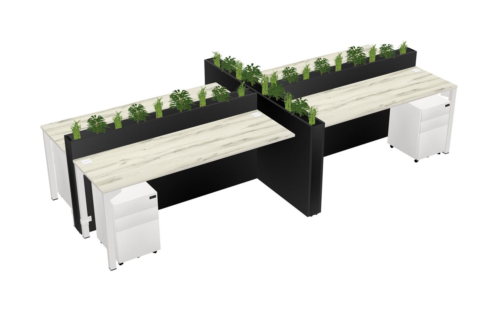 Heinne Holz Rectangular Shared Office Desk For 4 Persons Let Nature Help Flourish Your Productivity The Base Comes With An Adjustable Shelf To Provide Space For Pots (Pots & Plants Sold Separately)