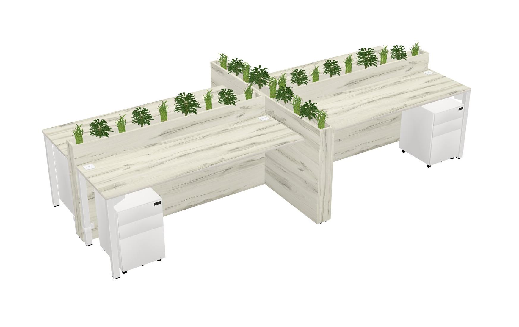 Heinne Holz Rectangular Shared Office Desk For 4 Persons Let Nature Help Flourish Your Productivity The Base Comes With An Adjustable Shelf To Provide Space For Pots (Pots & Plants Sold Separately)