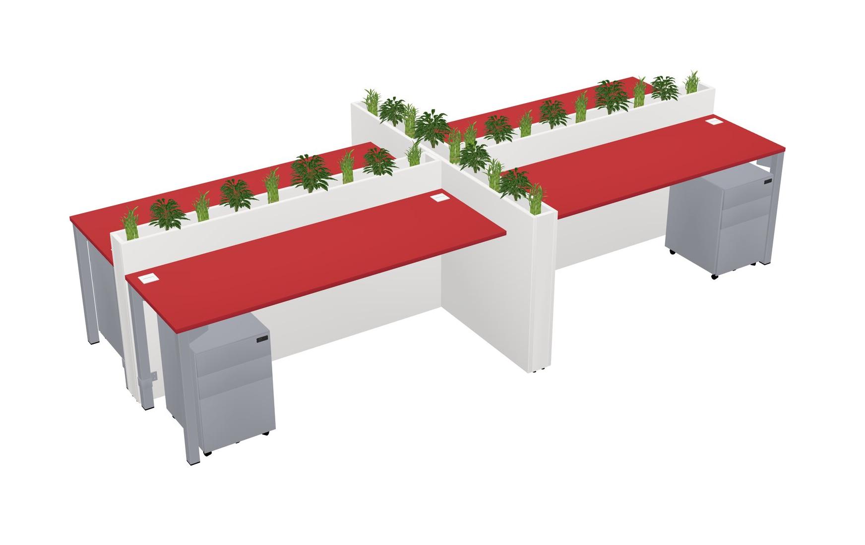 Prism Red Rectangular Shared Office Desk For 4 Persons Let Nature Help Flourish Your Productivity The Base Comes With An Adjustable Shelf To Provide Space For Pots (Pots & Plants Sold Separately)