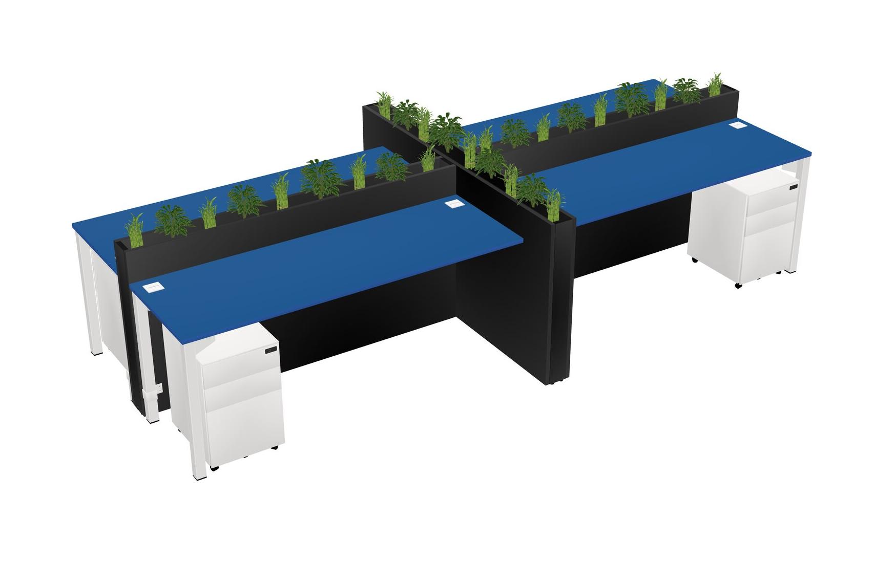 Prism Blue Rectangular Shared Office Desk For 4 Persons Let Nature Help Flourish Your Productivity The Base Comes With An Adjustable Shelf To Provide Space For Pots (Pots & Plants Sold Separately)