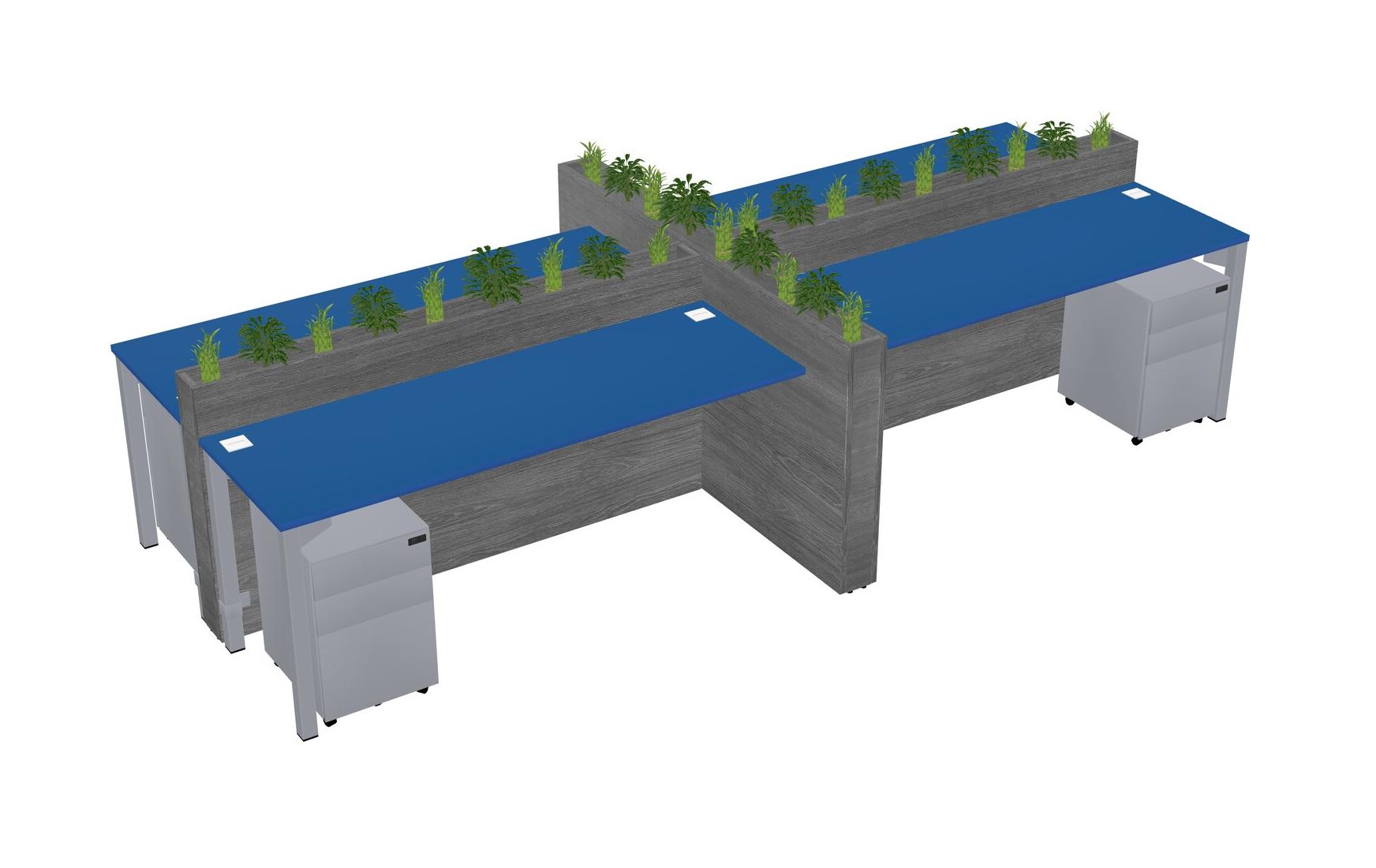Prism Blue Rectangular Shared Office Desk For 4 Persons Let Nature Help Flourish Your Productivity The Base Comes With An Adjustable Shelf To Provide Space For Pots (Pots & Plants Sold Separately)