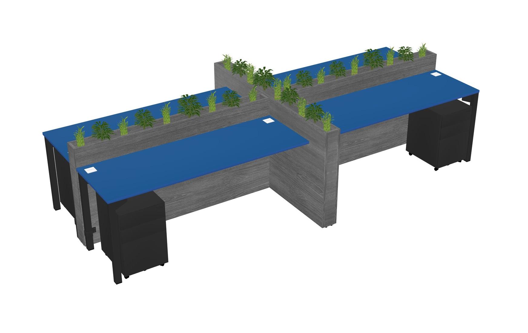 Prism Blue Rectangular Shared Office Desk For 4 Persons Let Nature Help Flourish Your Productivity The Base Comes With An Adjustable Shelf To Provide Space For Pots (Pots & Plants Sold Separately)