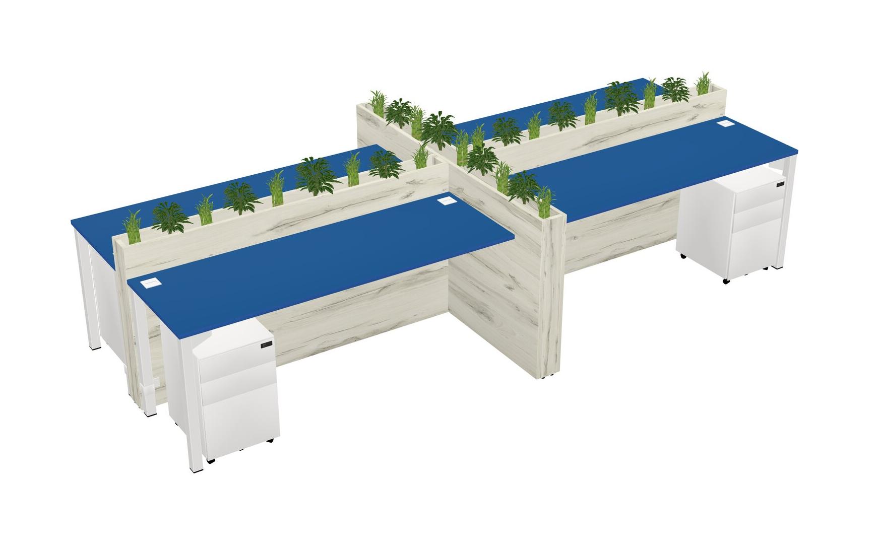 Prism Blue Rectangular Shared Office Desk For 4 Persons Let Nature Help Flourish Your Productivity The Base Comes With An Adjustable Shelf To Provide Space For Pots (Pots & Plants Sold Separately)