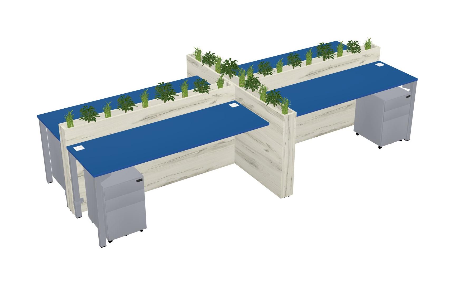 Prism Blue Rectangular Shared Office Desk For 4 Persons Let Nature Help Flourish Your Productivity The Base Comes With An Adjustable Shelf To Provide Space For Pots (Pots & Plants Sold Separately)