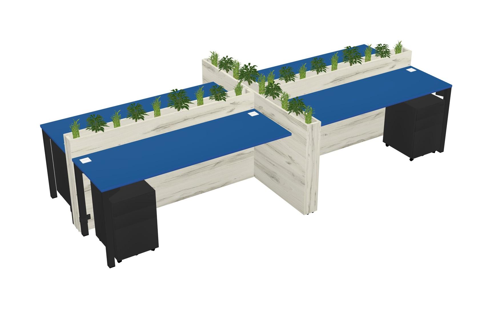 Prism Blue Rectangular Shared Office Desk For 4 Persons Let Nature Help Flourish Your Productivity The Base Comes With An Adjustable Shelf To Provide Space For Pots (Pots & Plants Sold Separately)