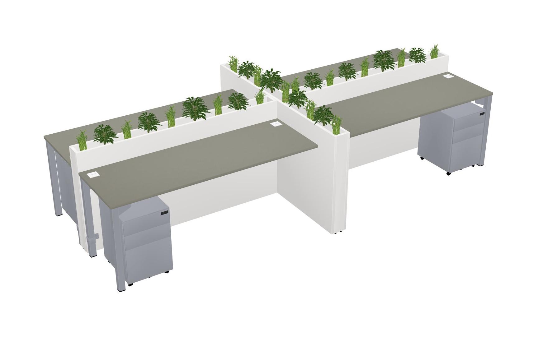 Grey Shadows Rectangular Shared Office Desk For 4 Persons Let Nature Help Flourish Your Productivity The Base Comes With An Adjustable Shelf To Provide Space For Pots (Pots & Plants Sold Separately)
