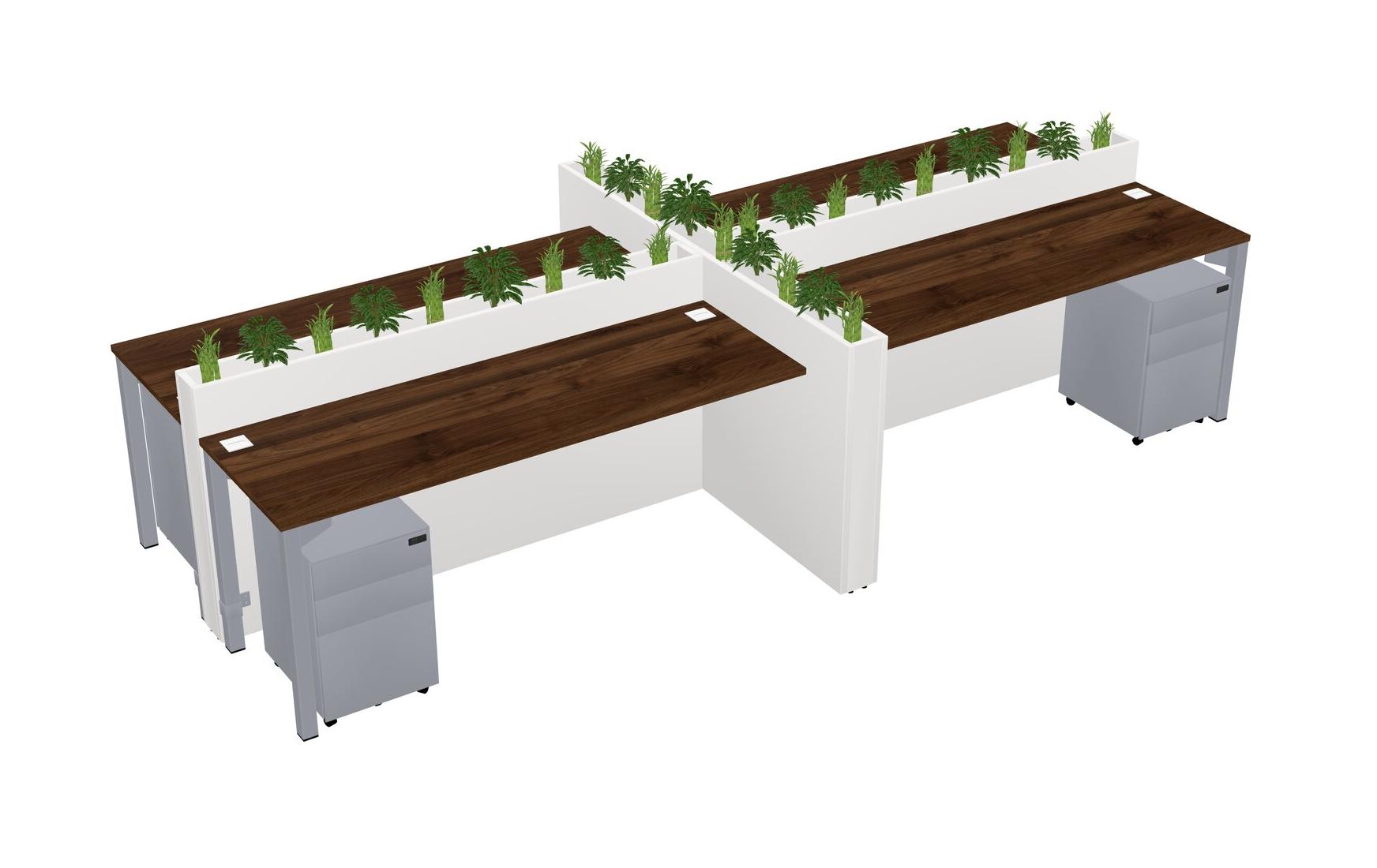 Columbia Walnut Rectangular Shared Office Desk For 4 Persons Let Nature Help Flourish Your Productivity The Base Comes With An Adjustable Shelf To Provide Space For Pots (Pots & Plants Sold Separately)