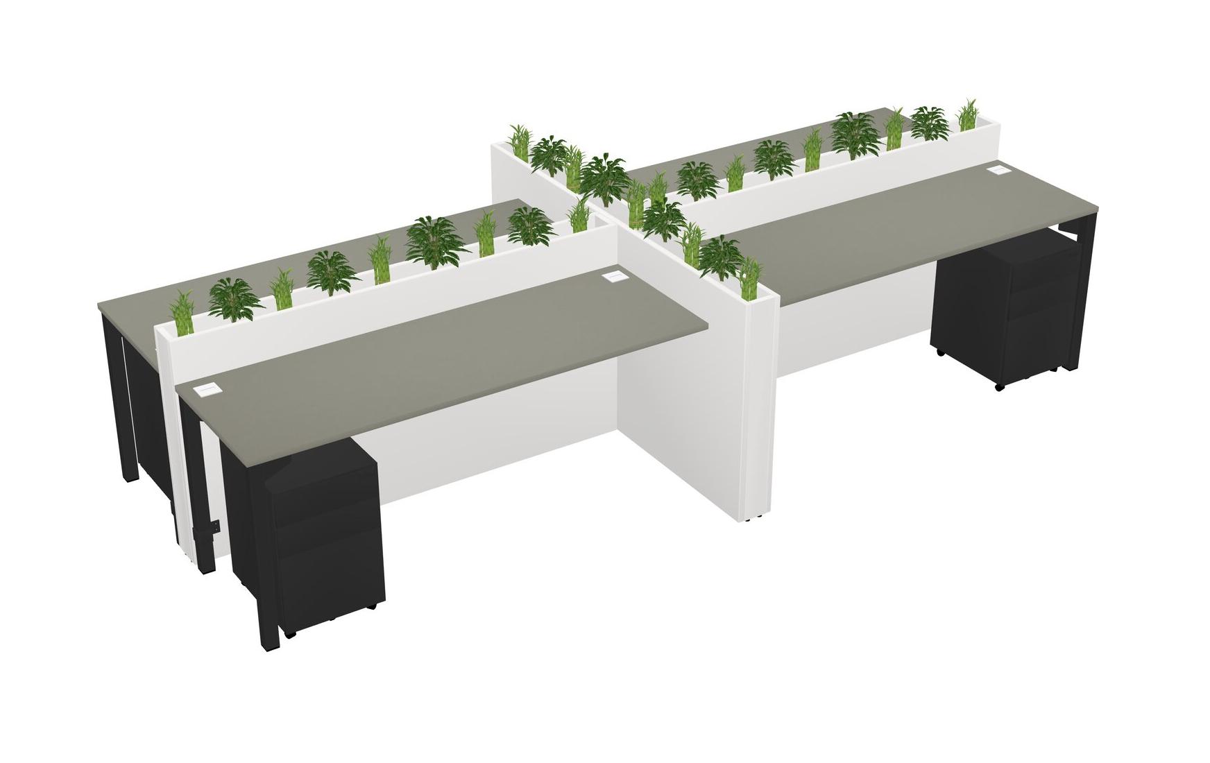 Grey Shadows Rectangular Shared Office Desk For 4 Persons Let Nature Help Flourish Your Productivity The Base Comes With An Adjustable Shelf To Provide Space For Pots (Pots & Plants Sold Separately)