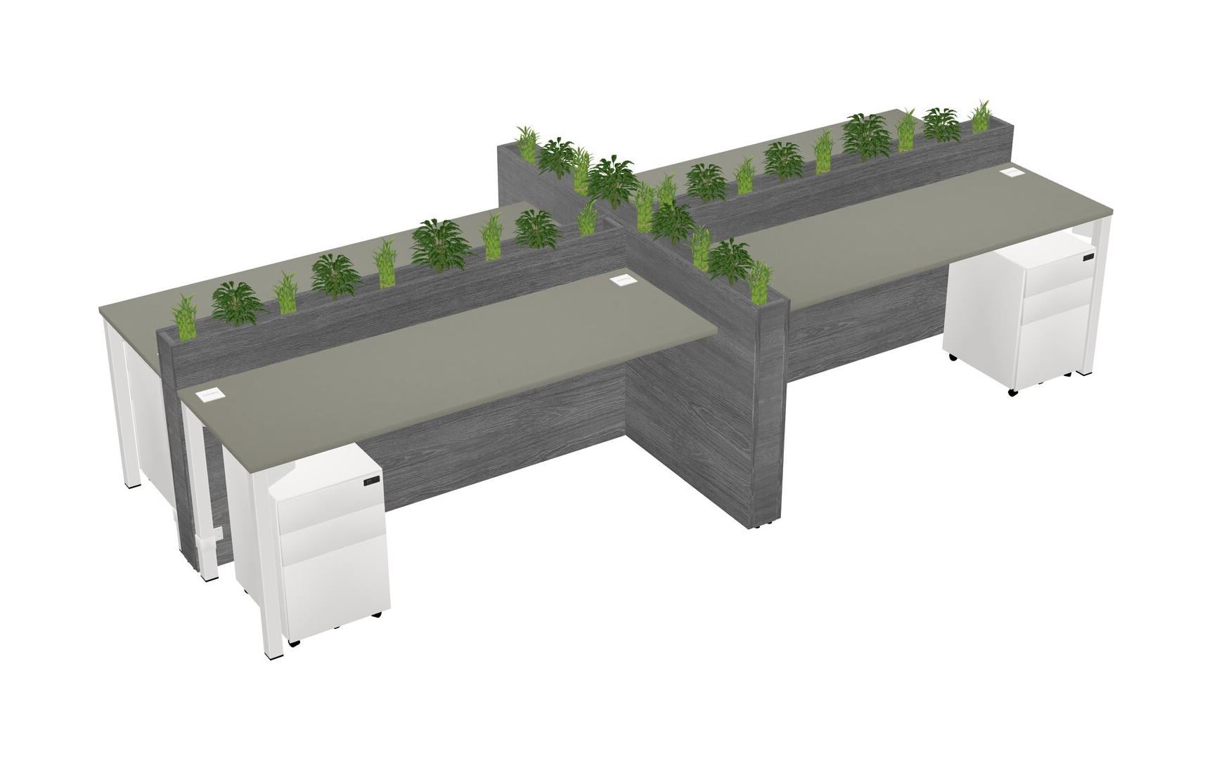 Grey Shadows Rectangular Shared Office Desk For 4 Persons Let Nature Help Flourish Your Productivity The Base Comes With An Adjustable Shelf To Provide Space For Pots (Pots & Plants Sold Separately)