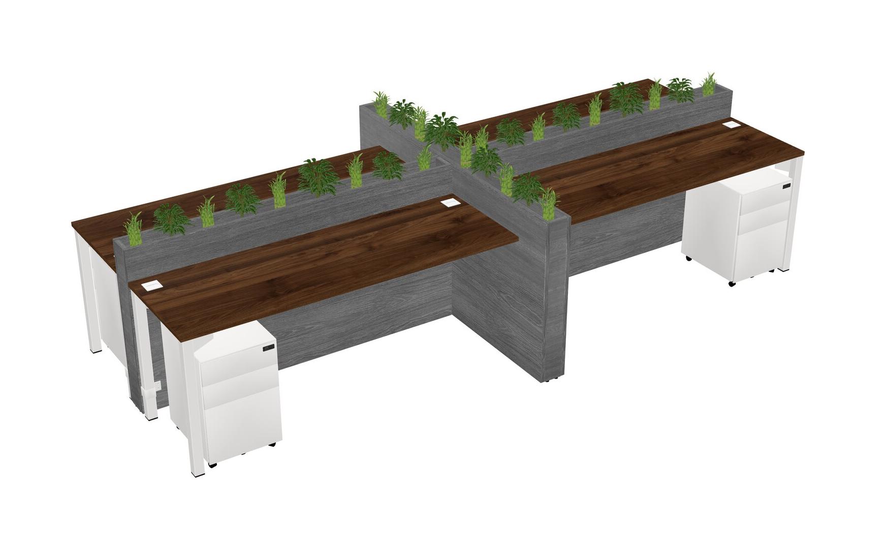 Columbia Walnut Rectangular Shared Office Desk For 4 Persons Let Nature Help Flourish Your Productivity The Base Comes With An Adjustable Shelf To Provide Space For Pots (Pots & Plants Sold Separately)