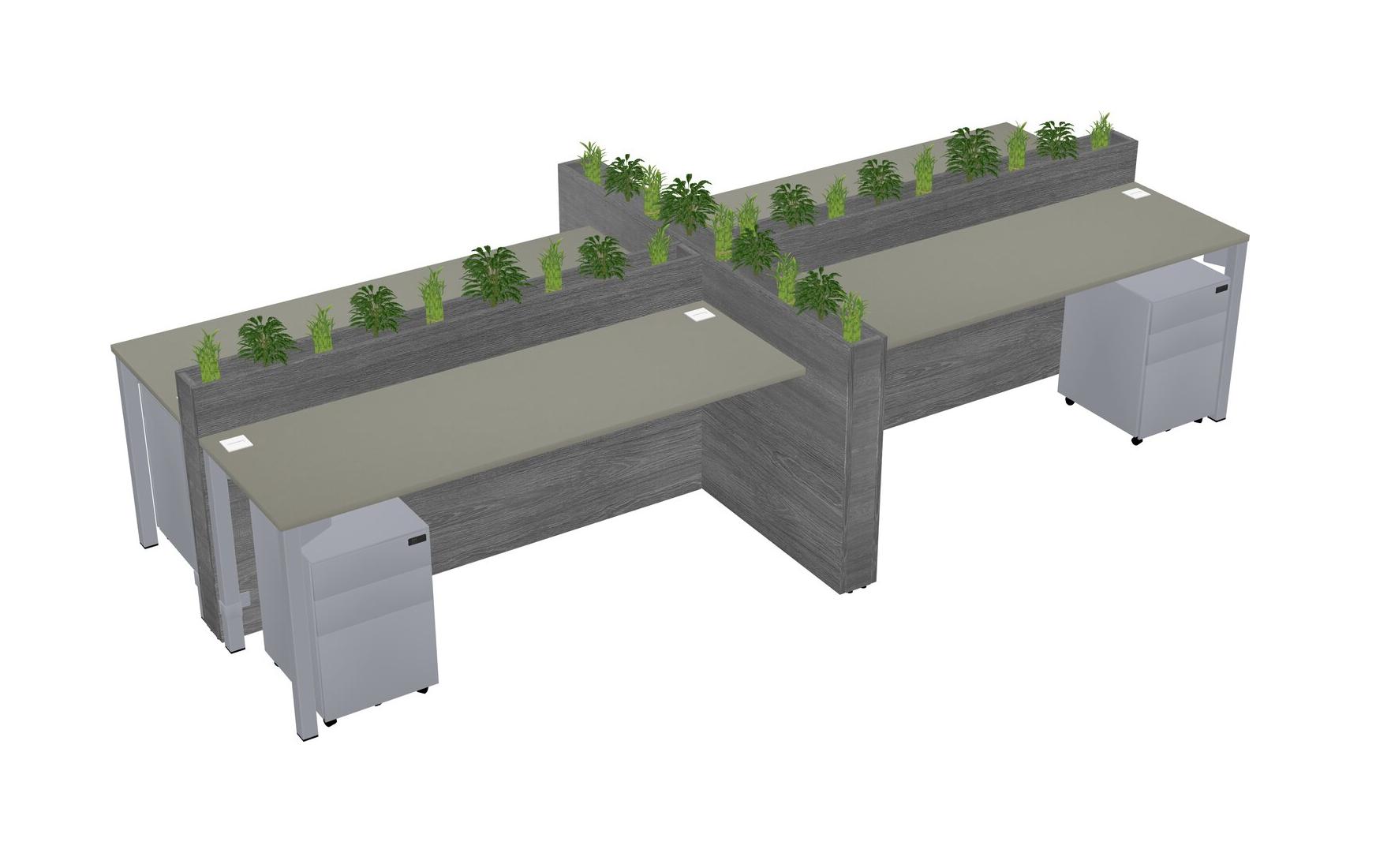 Grey Shadows Rectangular Shared Office Desk For 4 Persons Let Nature Help Flourish Your Productivity The Base Comes With An Adjustable Shelf To Provide Space For Pots (Pots & Plants Sold Separately)