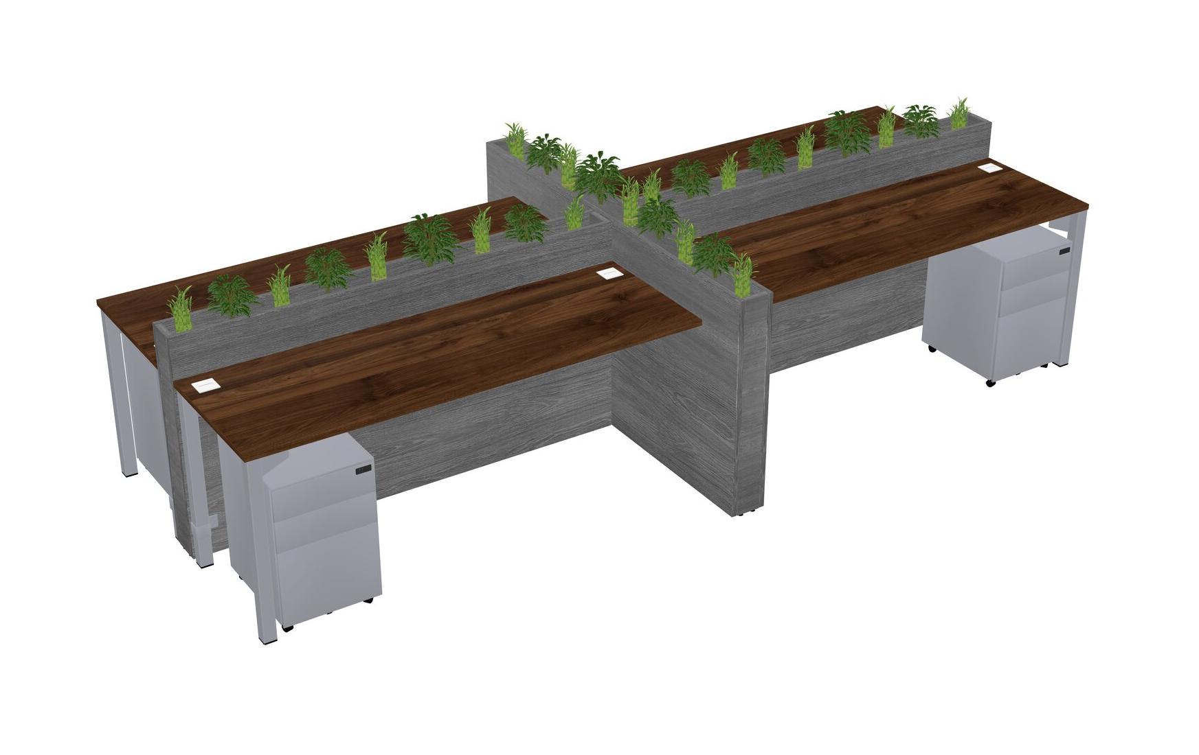 Columbia Walnut Rectangular Shared Office Desk For 4 Persons Let Nature Help Flourish Your Productivity The Base Comes With An Adjustable Shelf To Provide Space For Pots (Pots & Plants Sold Separately)