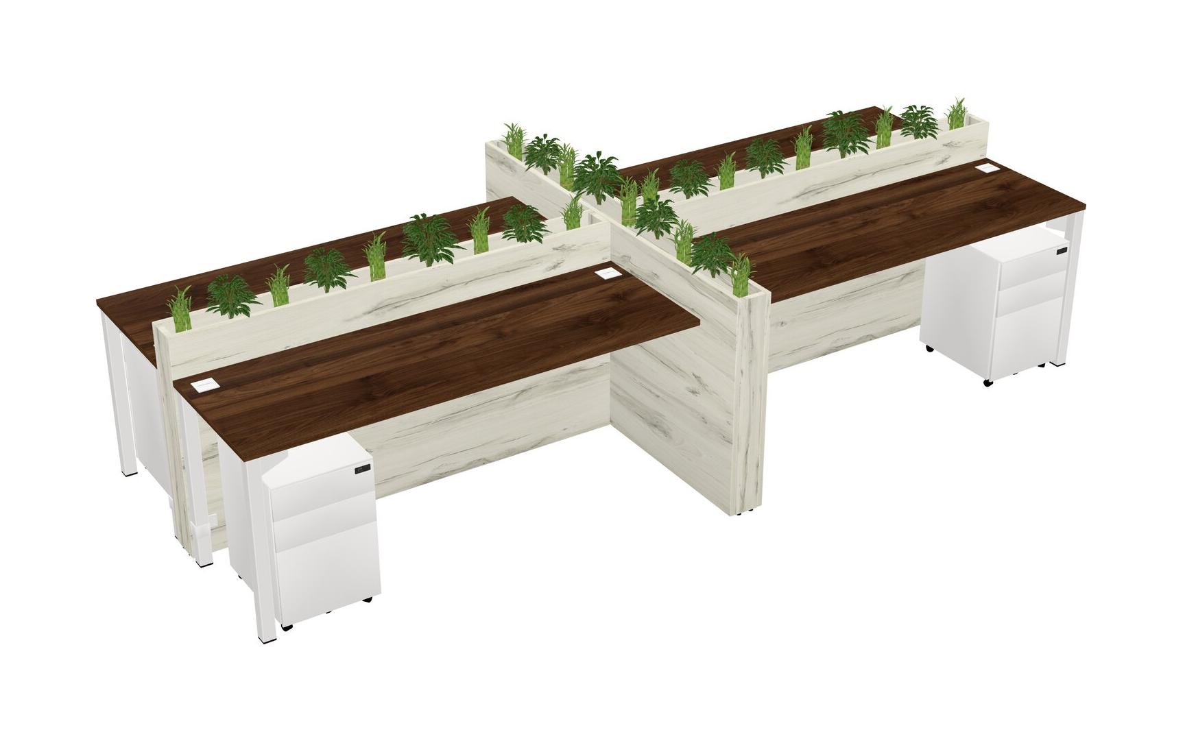 Columbia Walnut Rectangular Shared Office Desk For 4 Persons Let Nature Help Flourish Your Productivity The Base Comes With An Adjustable Shelf To Provide Space For Pots (Pots & Plants Sold Separately)