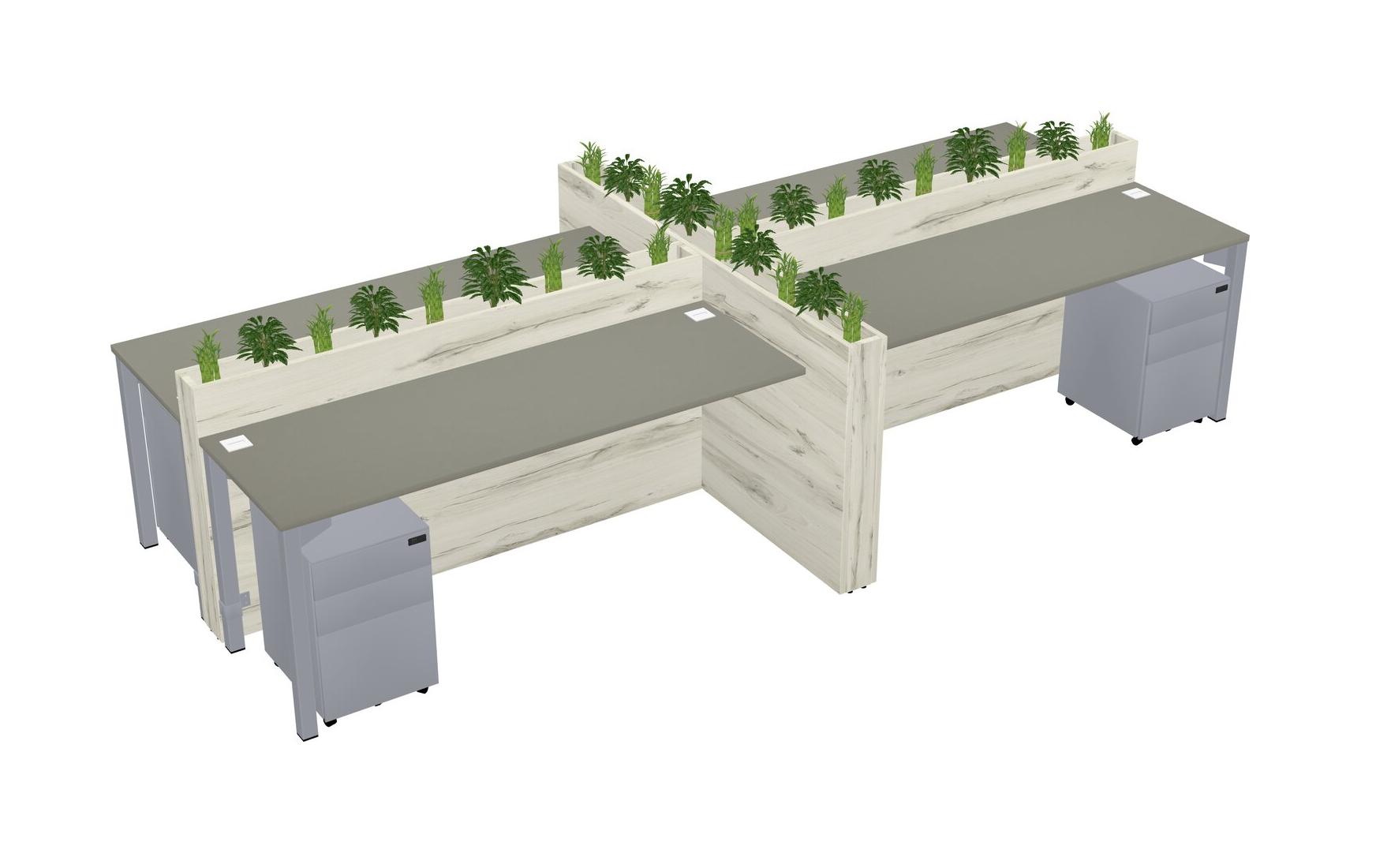 Grey Shadows Rectangular Shared Office Desk For 4 Persons Let Nature Help Flourish Your Productivity The Base Comes With An Adjustable Shelf To Provide Space For Pots (Pots & Plants Sold Separately)