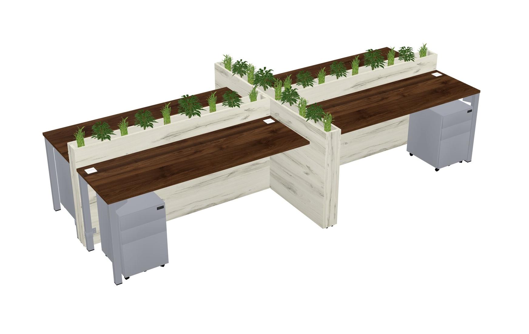 Columbia Walnut Rectangular Shared Office Desk For 4 Persons Let Nature Help Flourish Your Productivity The Base Comes With An Adjustable Shelf To Provide Space For Pots (Pots & Plants Sold Separately)