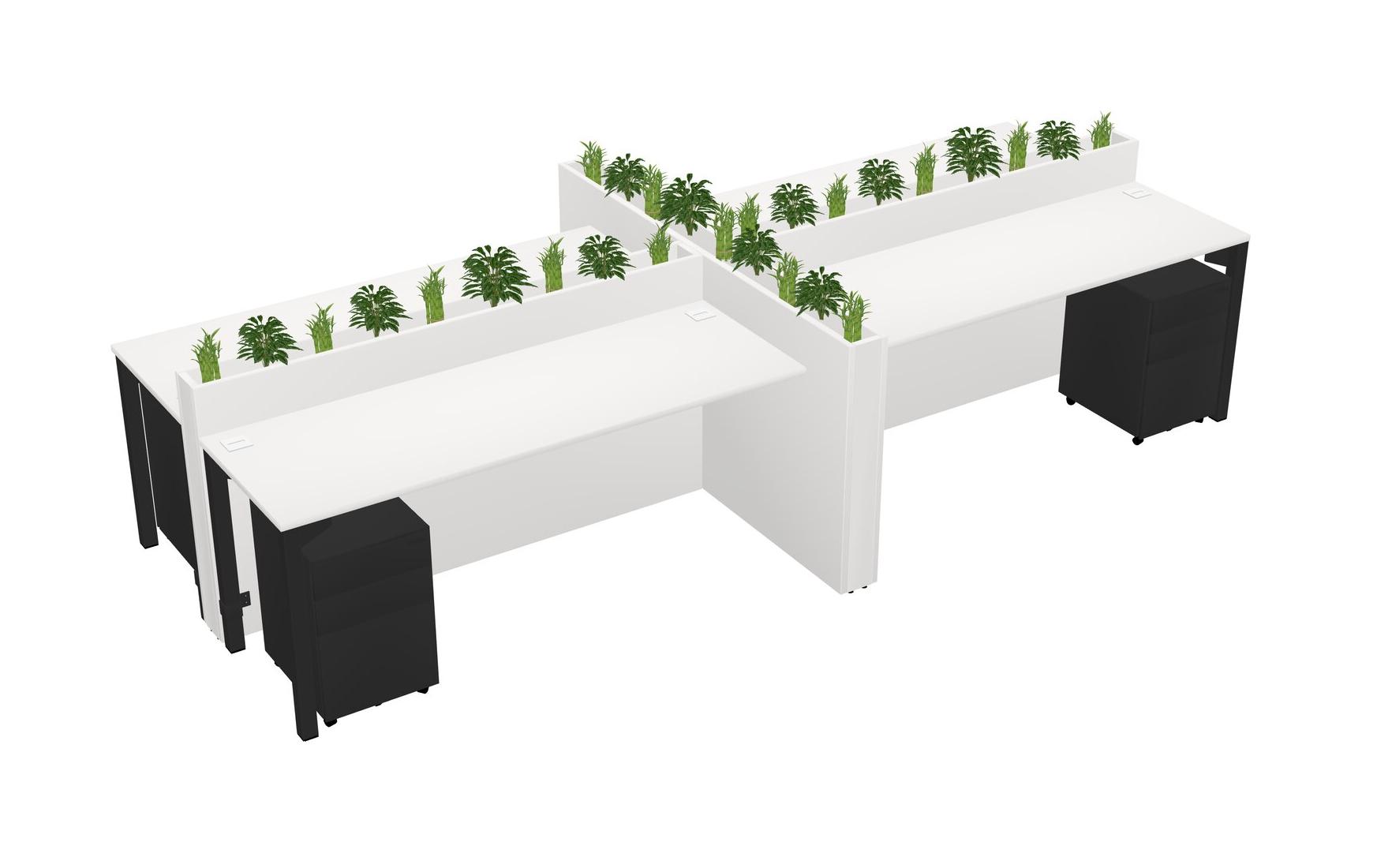 White Rectangular Shared Office Desk For 4 Persons Let Nature Help Flourish Your Productivity The Base Comes With An Adjustable Shelf To Provide Space For Pots (Pots & Plants Sold Separately)