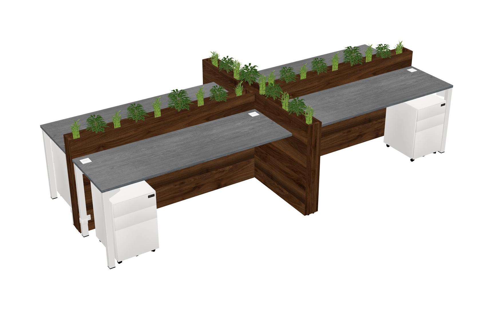 Grey Rectangular Shared Office Desk For 4 Persons Let Nature Help Flourish Your Productivity The Base Comes With An Adjustable Shelf To Provide Space For Pots (Pots & Plants Sold Separately)