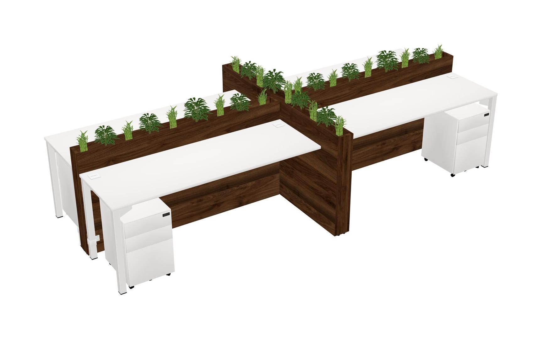 White Rectangular Shared Office Desk For 4 Persons Let Nature Help Flourish Your Productivity The Base Comes With An Adjustable Shelf To Provide Space For Pots (Pots & Plants Sold Separately)