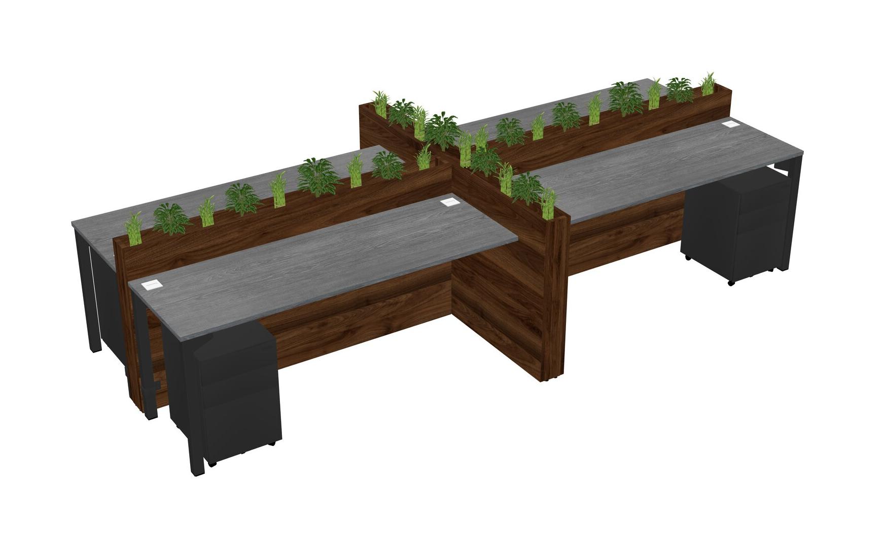 Grey Rectangular Shared Office Desk For 4 Persons Let Nature Help Flourish Your Productivity The Base Comes With An Adjustable Shelf To Provide Space For Pots (Pots & Plants Sold Separately)