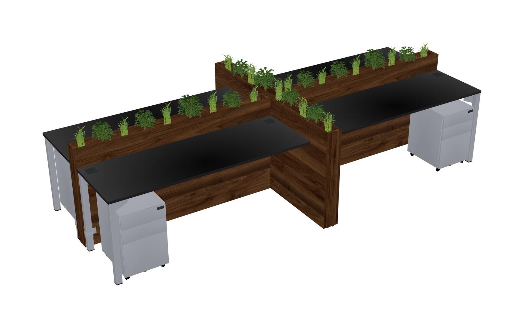 Black Rectangular Shared Office Desk For 4 Persons Let Nature Help Flourish Your Productivity The Base Comes With An Adjustable Shelf To Provide Space For Pots (Pots & Plants Sold Separately)