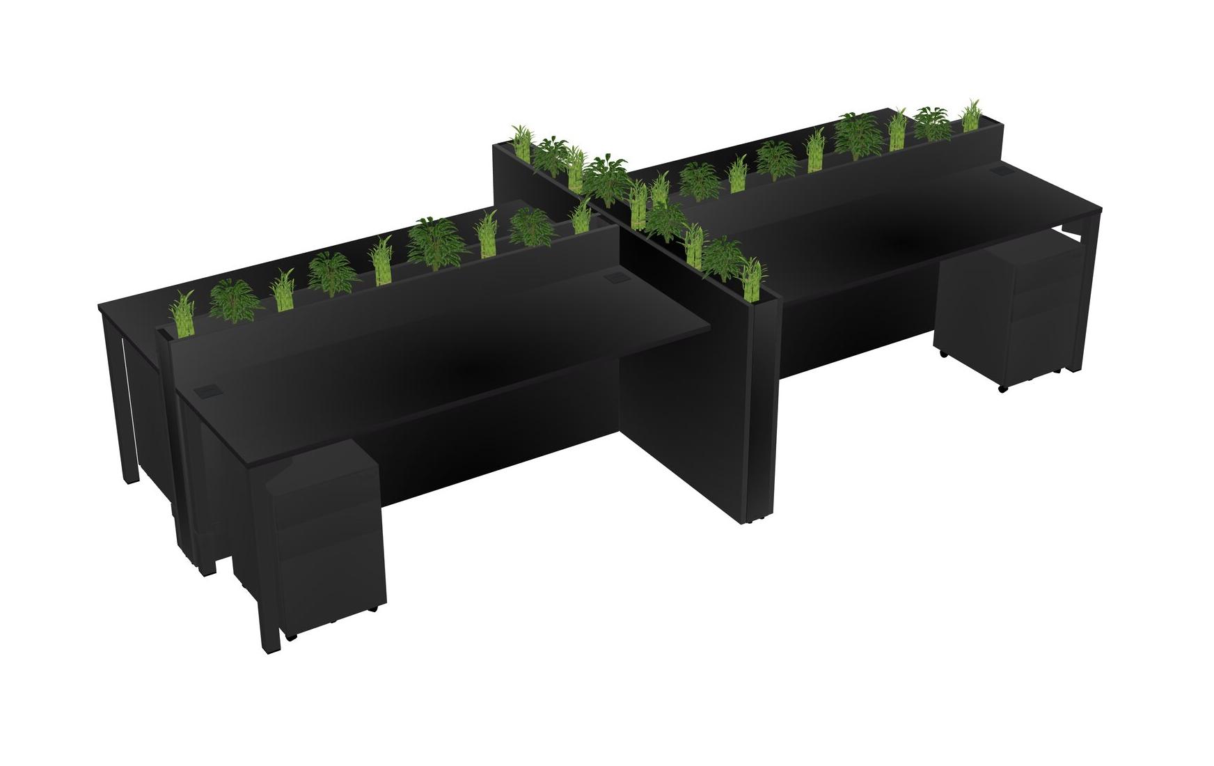 Black Rectangular Shared Office Desk For 4 Persons Let Nature Help Flourish Your Productivity The Base Comes With An Adjustable Shelf To Provide Space For Pots (Pots & Plants Sold Separately)