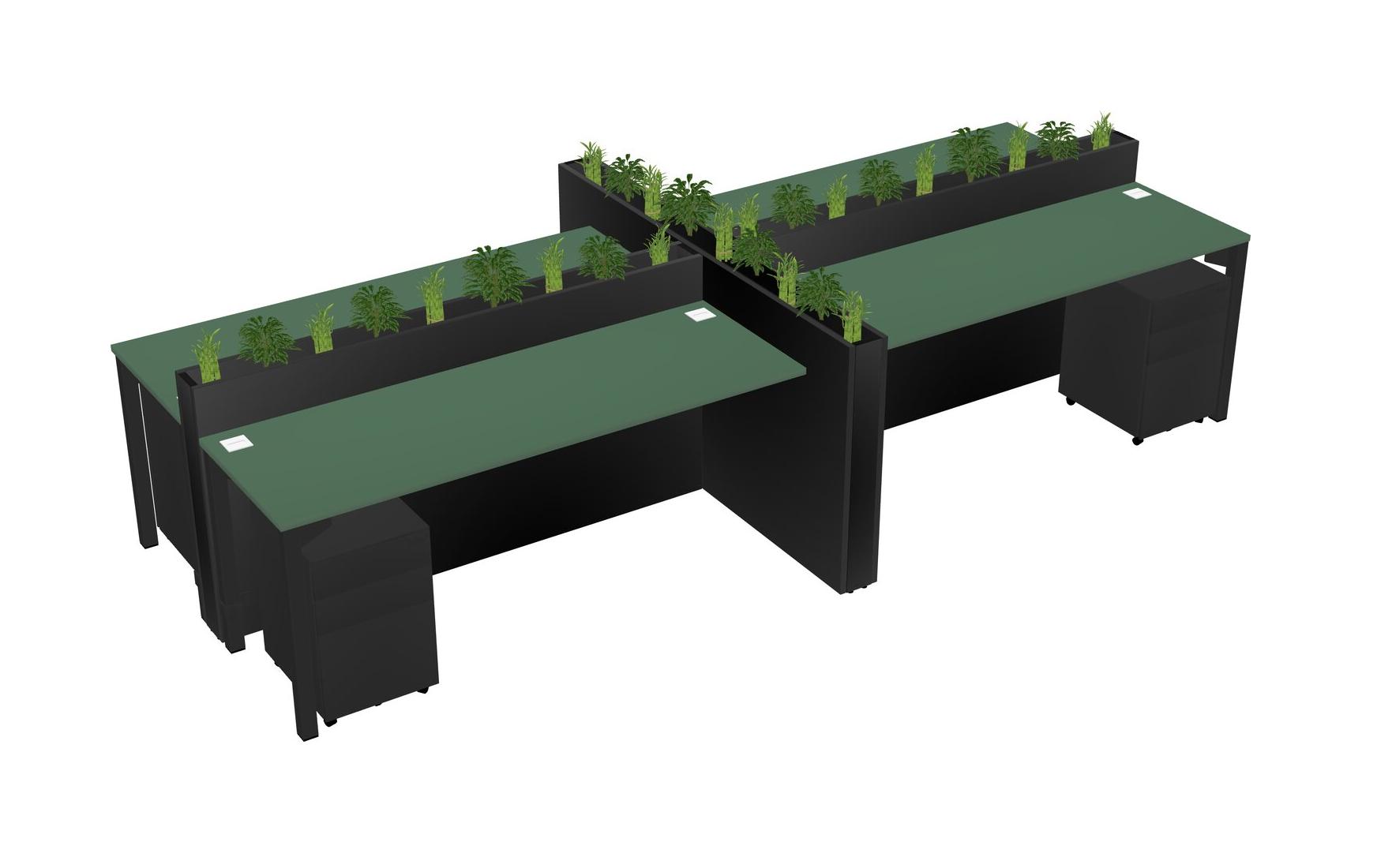 Green Rectangular Shared Office Desk For 4 Persons Let Nature Help Flourish Your Productivity The Base Comes With An Adjustable Shelf To Provide Space For Pots (Pots & Plants Sold Separately)