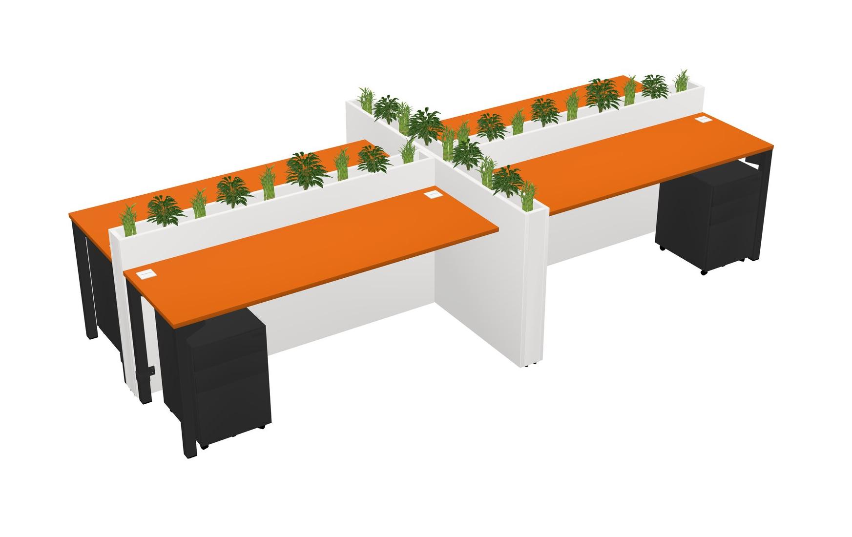 Orange Rectangular Shared Office Desk For 4 Persons Let Nature Help Flourish Your Productivity The Base Comes With An Adjustable Shelf To Provide Space For Pots (Pots & Plants Sold Separately)