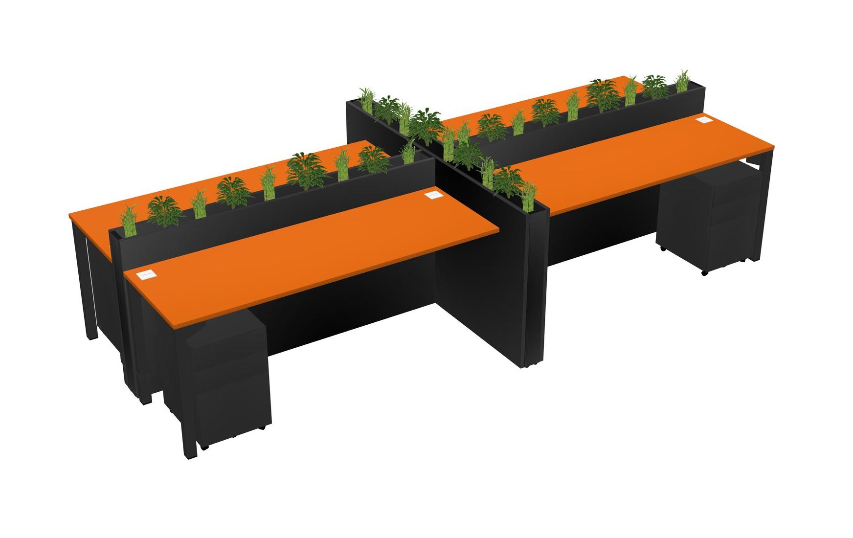 Orange Rectangular Shared Office Desk For 4 Persons Let Nature Help Flourish Your Productivity The Base Comes With An Adjustable Shelf To Provide Space For Pots (Pots & Plants Sold Separately)