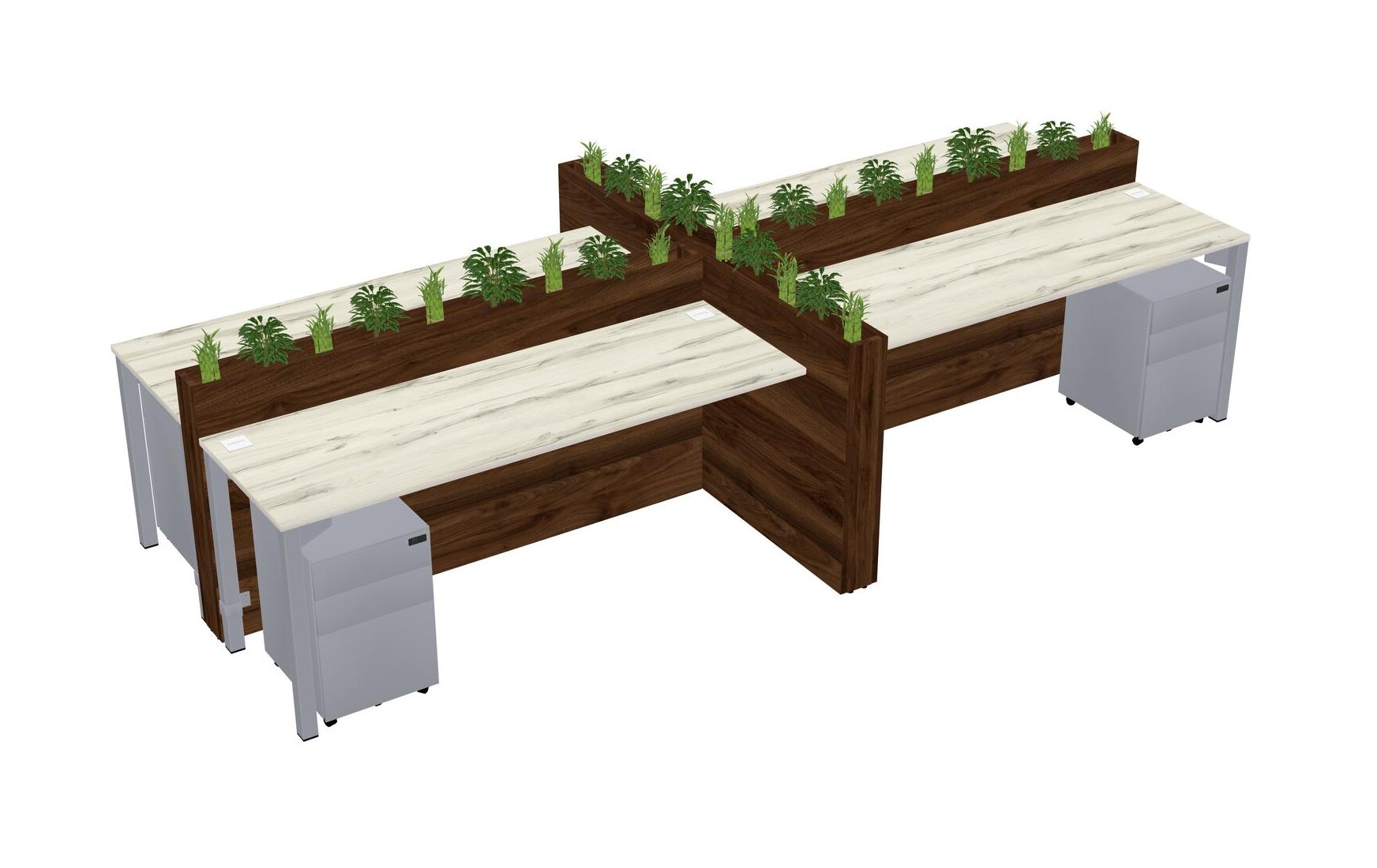 Heinne Holz Rectangular Shared Office Desk For 4 Persons Let Nature Help Flourish Your Productivity The Base Comes With An Adjustable Shelf To Provide Space For Pots (Pots & Plants Sold Separately)