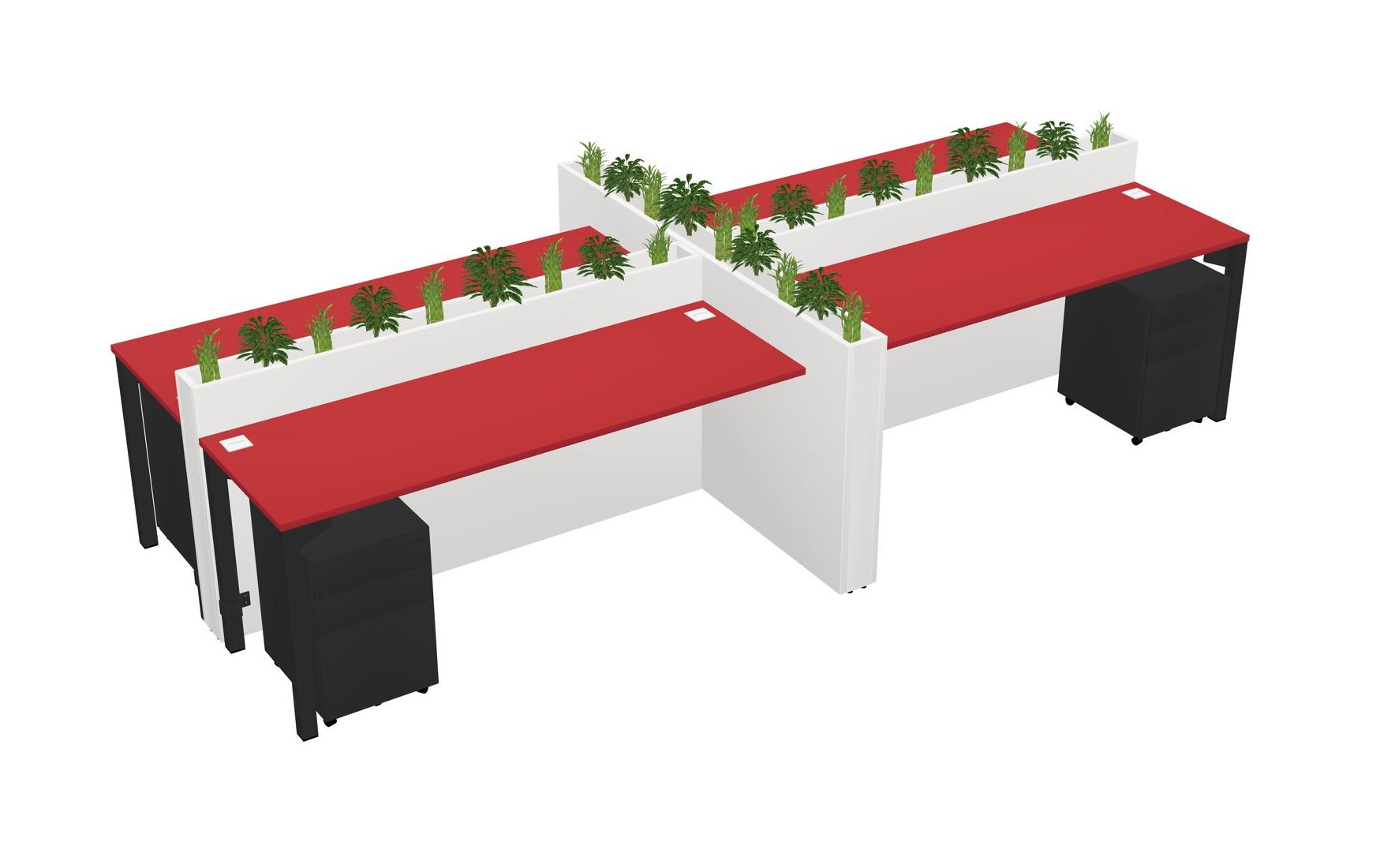 Prism Red Rectangular Shared Office Desk For 4 Persons Let Nature Help Flourish Your Productivity The Base Comes With An Adjustable Shelf To Provide Space For Pots (Pots & Plants Sold Separately)