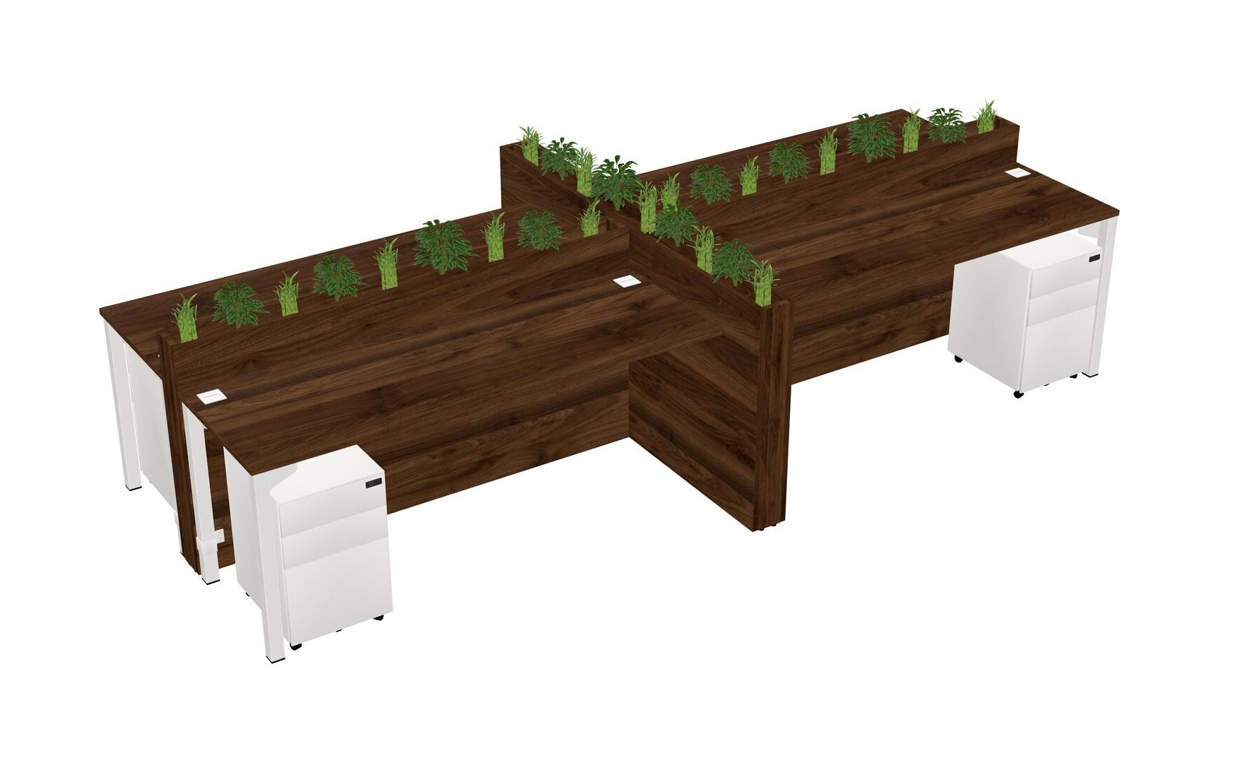 Columbia Walnut Rectangular Shared Office Desk For 4 Persons Let Nature Help Flourish Your Productivity The Base Comes With An Adjustable Shelf To Provide Space For Pots (Pots & Plants Sold Separately)
